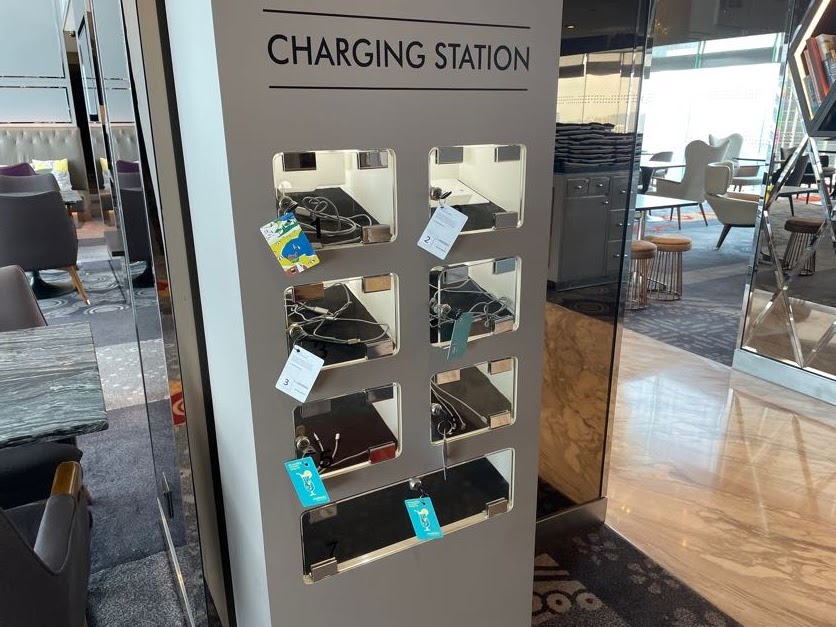ラウンジ中央あたりにスマホのチャージステーションがあります。