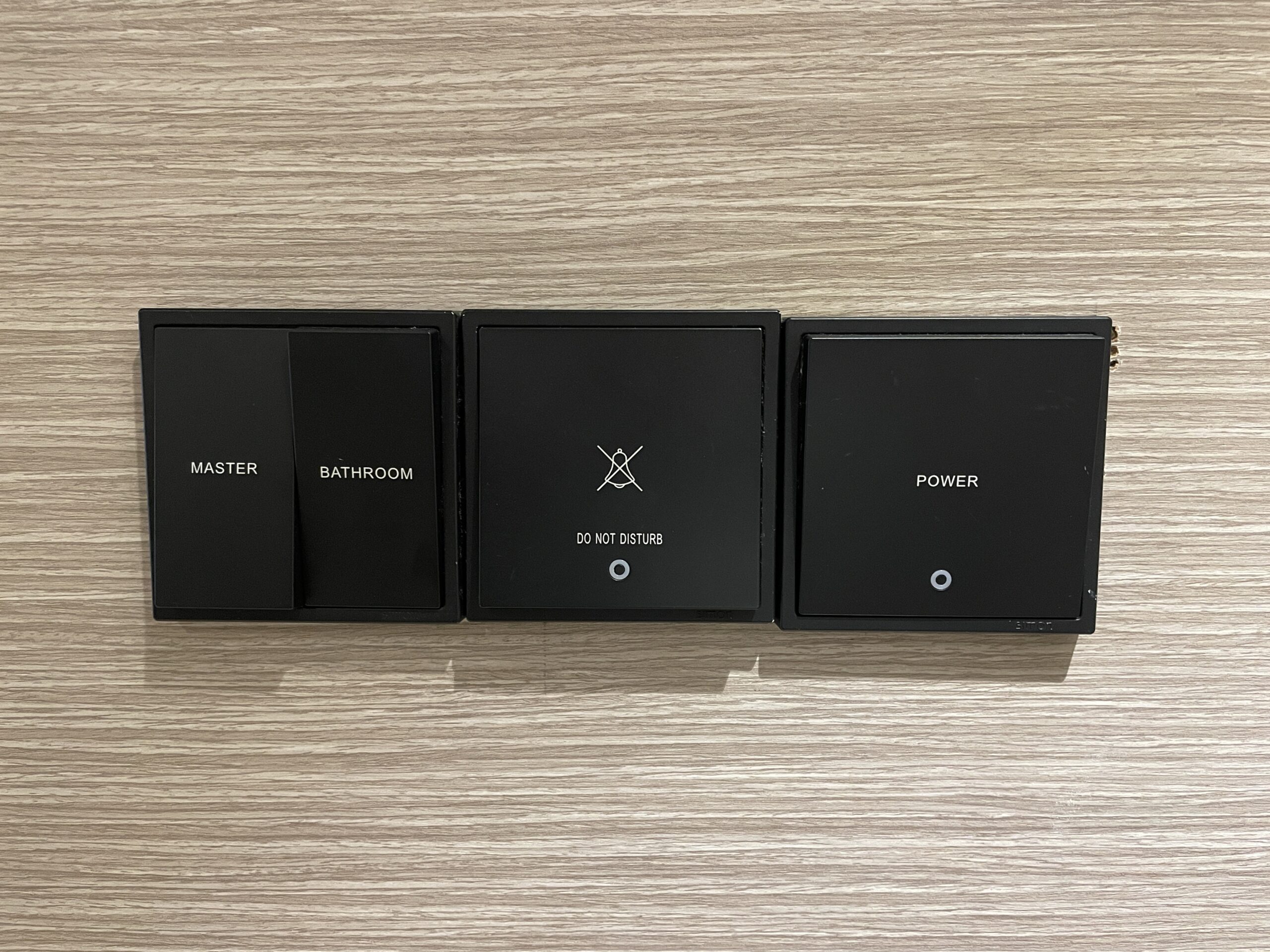 部屋に入ってすぐ右側の壁に室内照明のマスタースイッチなどがあります。