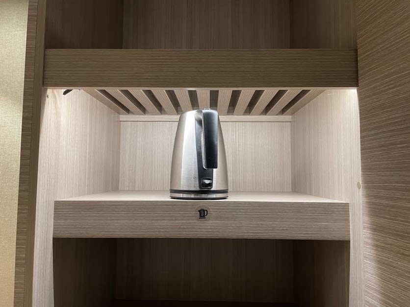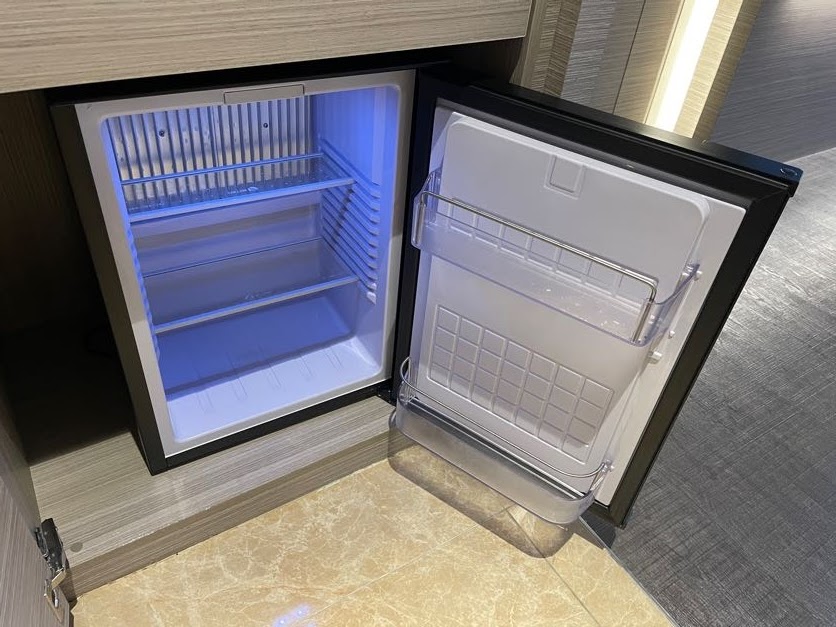 引き戸の中に空っぽの冷蔵庫がありますので、コンビニなどで買ってきたドリンクを入れておくことが出来ます。