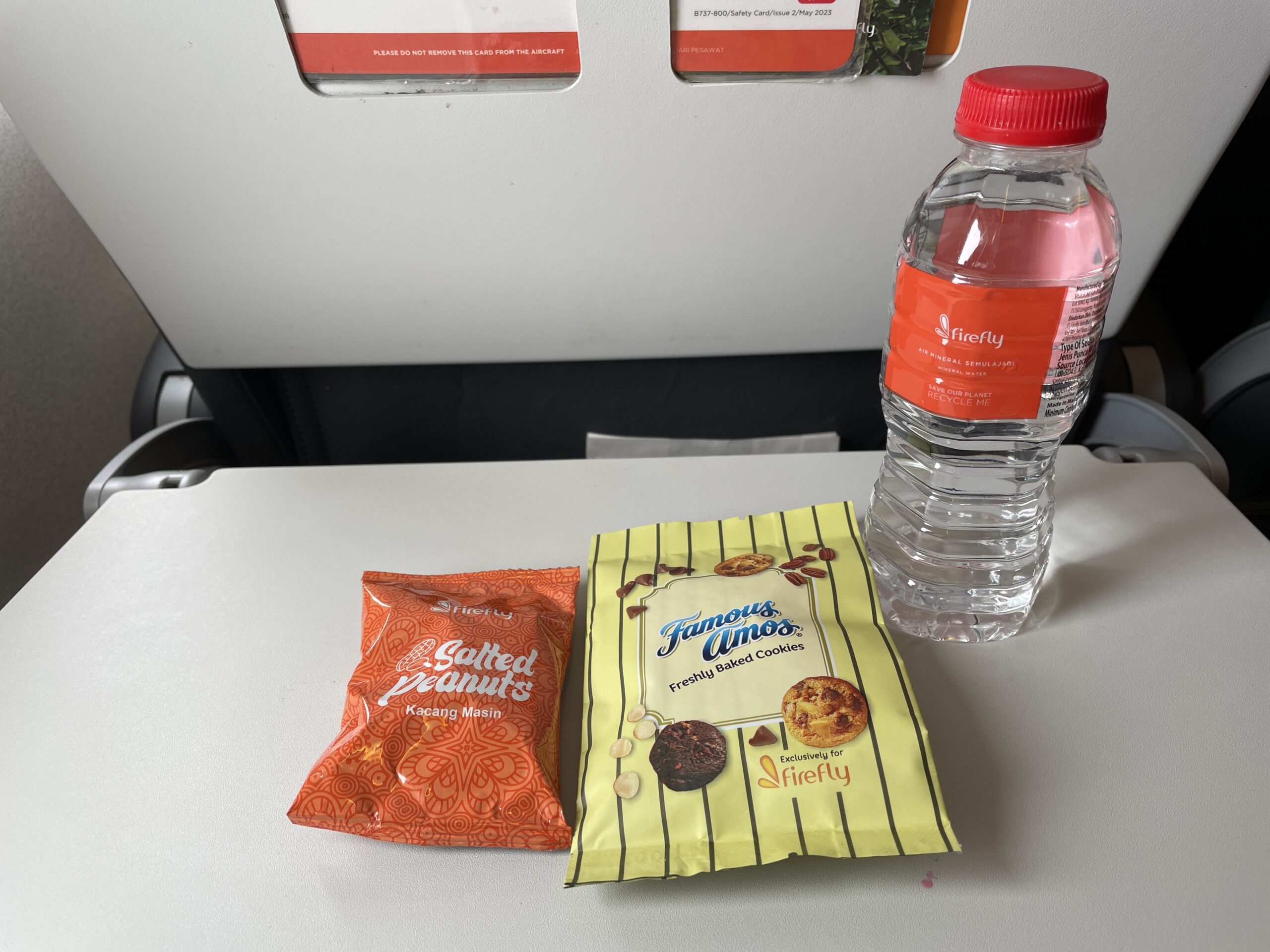しかしなんと、LCCにもかかわらずボトルウォーターとナッツ&クッキーが提供されるのです!