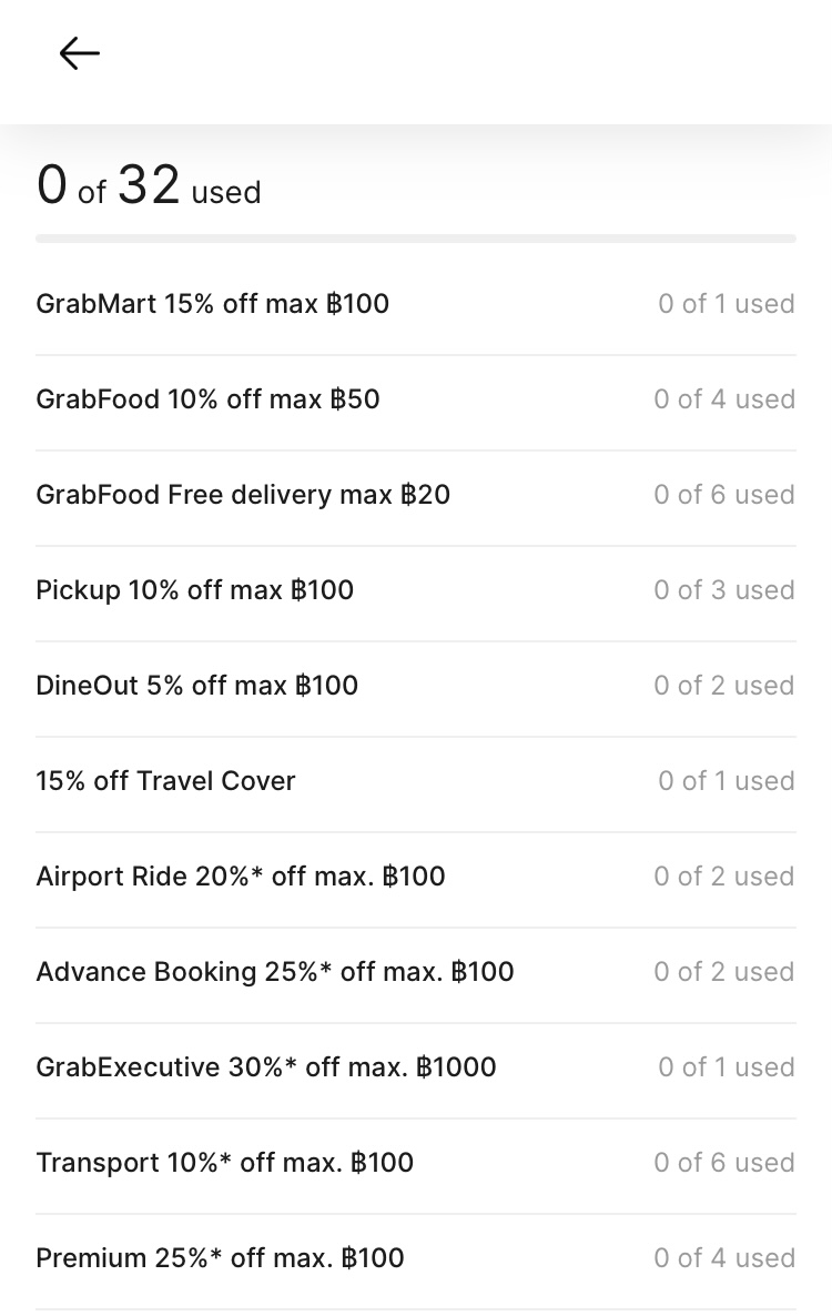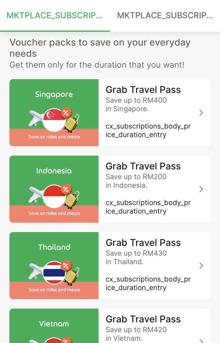 例えば、マレーシア国内でGrabタクシー予約画面内でタイ用のバウチャーは表示されません。