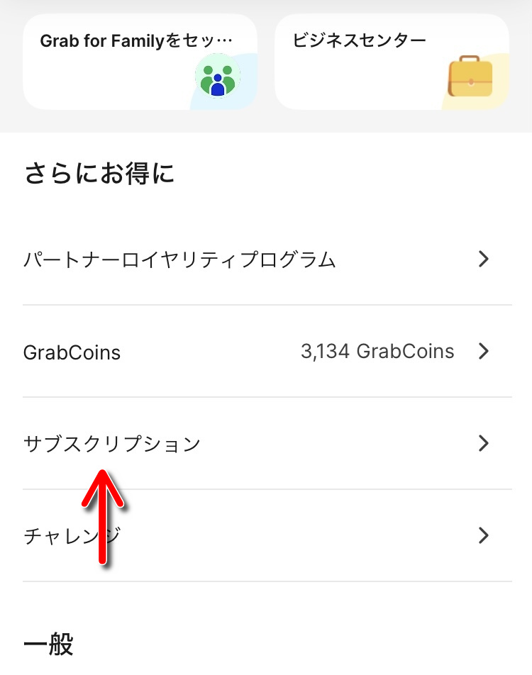 ➁、Grabアプリの 「Account(アカウント)」 から 「Subscription(サブスクリプション)」を探す。