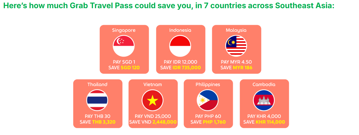 「Grab Travel Pass」とは、東南アジア地域(複数国)旅行者向けにGrabアプリ内で用意された「割引/特典パック」です。