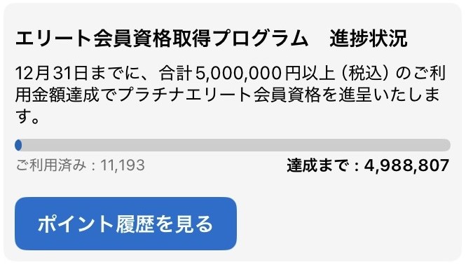 カード所持でゴールドステータス、さらに500万円カード決済利用でプラチナステータスを獲得