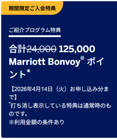 合計125,000Marriott Bonvoyポイントがもらえます。