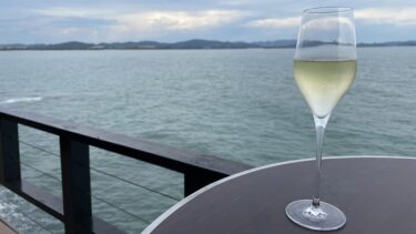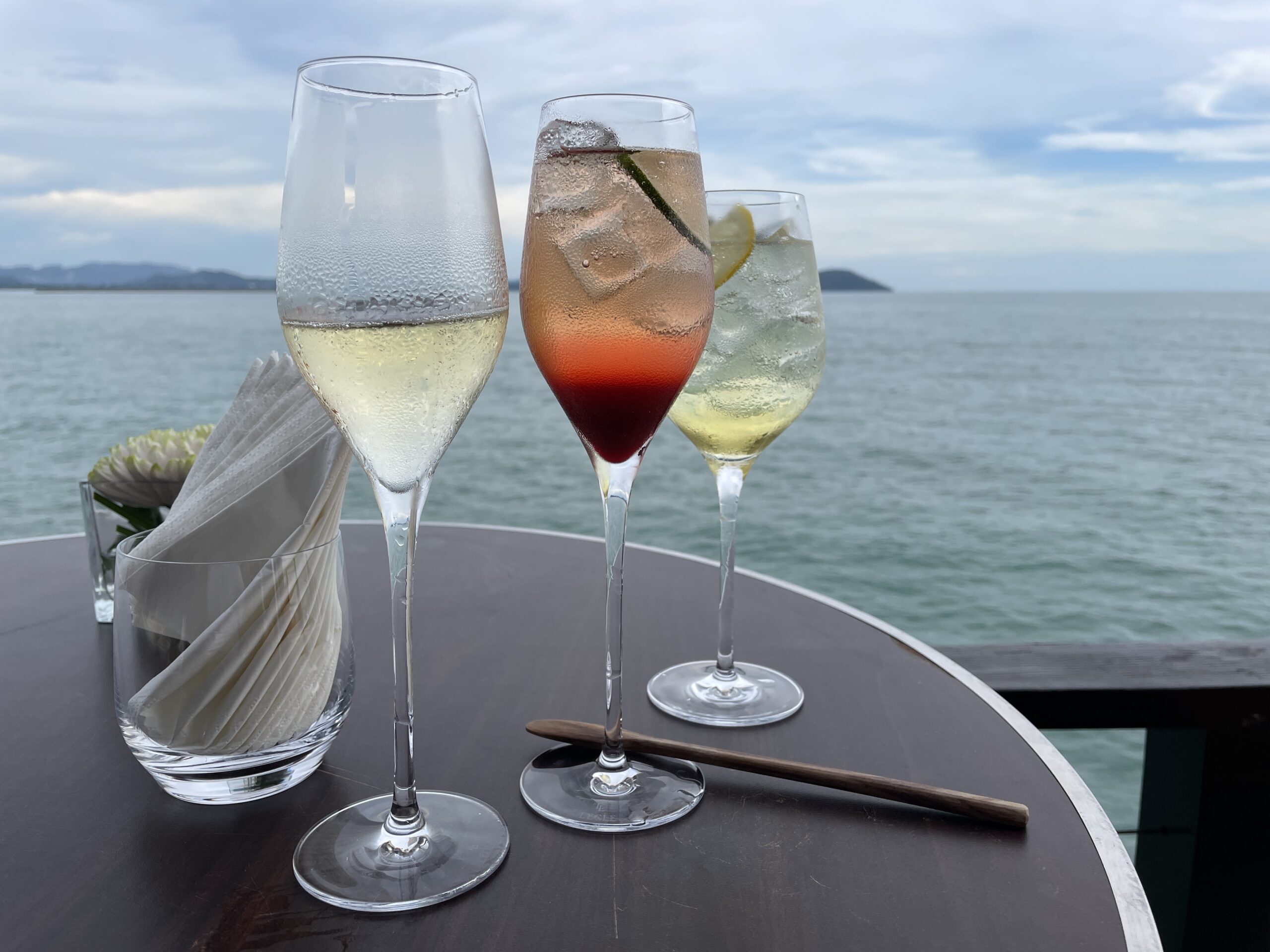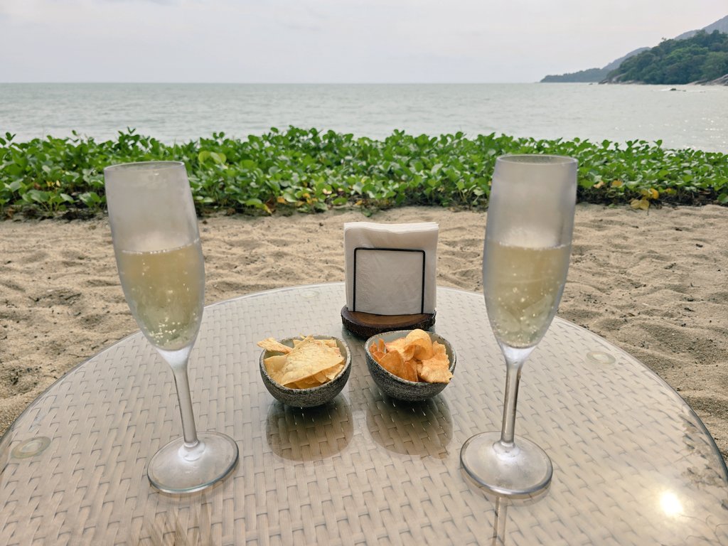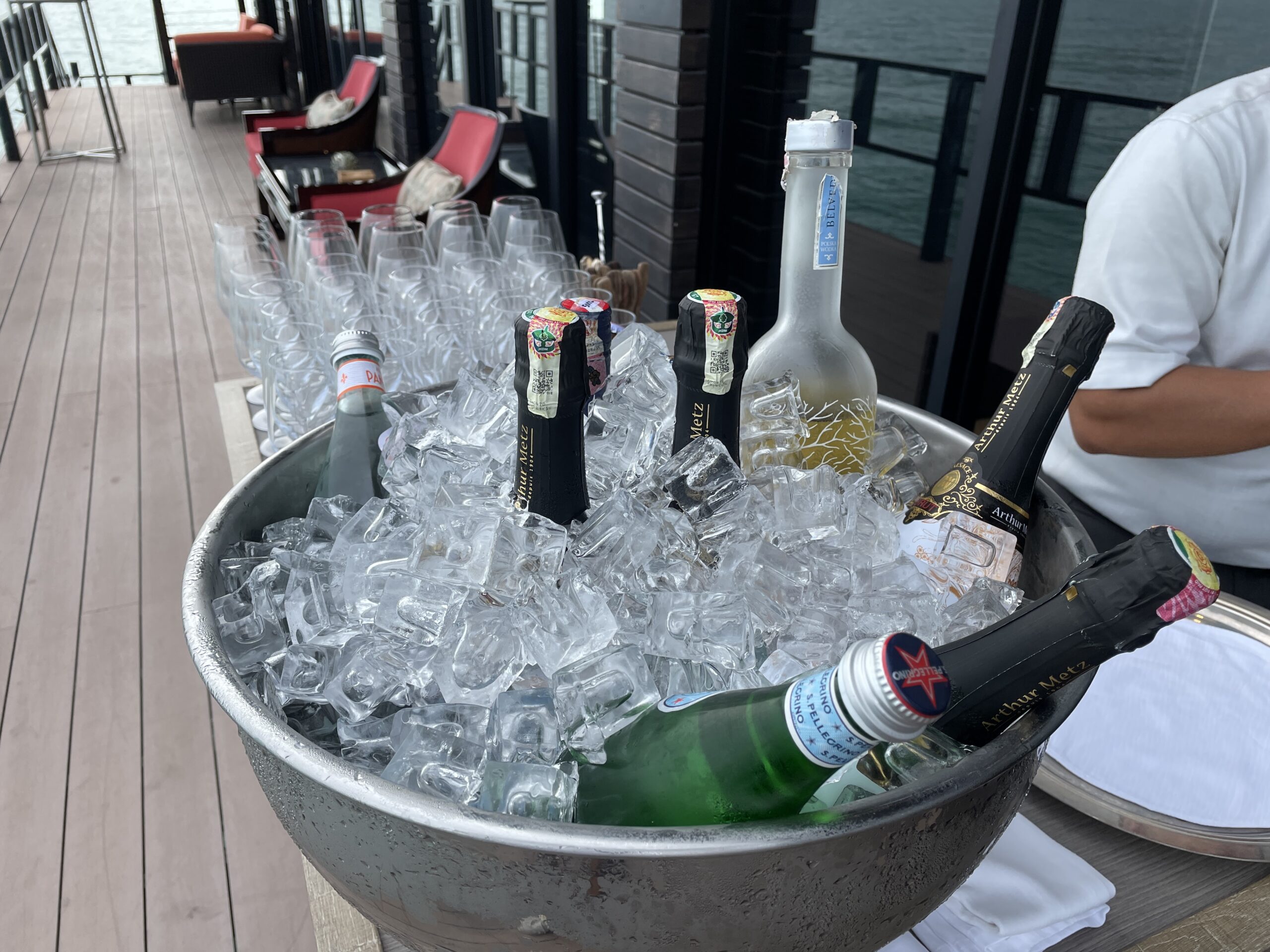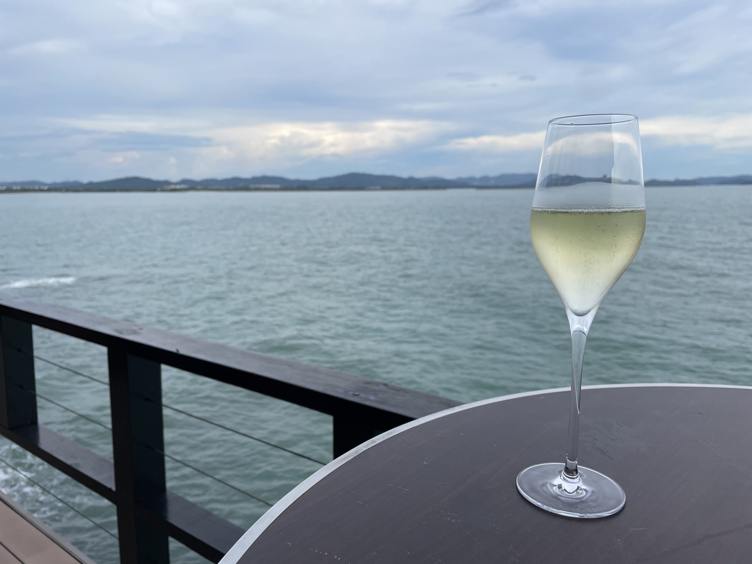 とりあえずスパークリングワインをいただき、アンダマン海との写真をパシャリ。